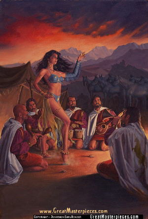 Well, now we come to a real tear-jerker. Look at the picture (above). What you see is Hagar, a lovely young Egyptian woman, watching over her son Ishmael and his descendants, the Arabs - cousins of the Jews. So how did all this come about ? Well, you see, Abraham was the forefather of both the Jews and the Arabs. Abraham’s wife, Sarah (then called Sarai) was infertile – unable to give him an heir and learning to live with the fact that she would never be a mother. Abraham was a pretty wealthy guy – but he had no children. Then the Lord God promised Abraham that he would make him the forefather of a mighty nation, but Sarai really did not quite hold out much hope of her playing any part in that promise – she just laughed. So, feeling sorry for Abraham one day, she suggested that he conceive a baby with Hagar, her lovely young Egyptian hand-maiden, and take her for his wife. Abraham did all this, and their child was called Ishmael. However, things already started getting a little testy when Hagar was pregnant. She began to despise Abraham’s wife Sarai, who obviously did not want to be moved out of the limelight and have Hagar replace her. Sarai complained to Abraham who basically said “It was your idea Sarai … you deal with it”. So, to quote the bible exactly: “Then Sarai mistreated Hagar; so she fled from her”. (Genesis 16:6) I imagine this “Cat fight” was not done much justice by the author of Genesis, but we can probably imagine what happened. Anyhow, pretty soon poor Hagar winds up near a spring in the desert – abandoned by her husband Abraham and chased away like some “common tramp” by Sarai. A this point, an Angel of the Lord appears to Hagar and promises that if Hagar returns and humbles herself, her descendants will be too numerous to count. As well though, the Angel says to her that her son Ishmael (from whom the Arabs are descended ) “will be a wild donkey of a man, his hand will be against everyone and everyone’s hand against him, and he will live in hostility towards all his brothers” … anyone left who doubts biblical prophesy ?